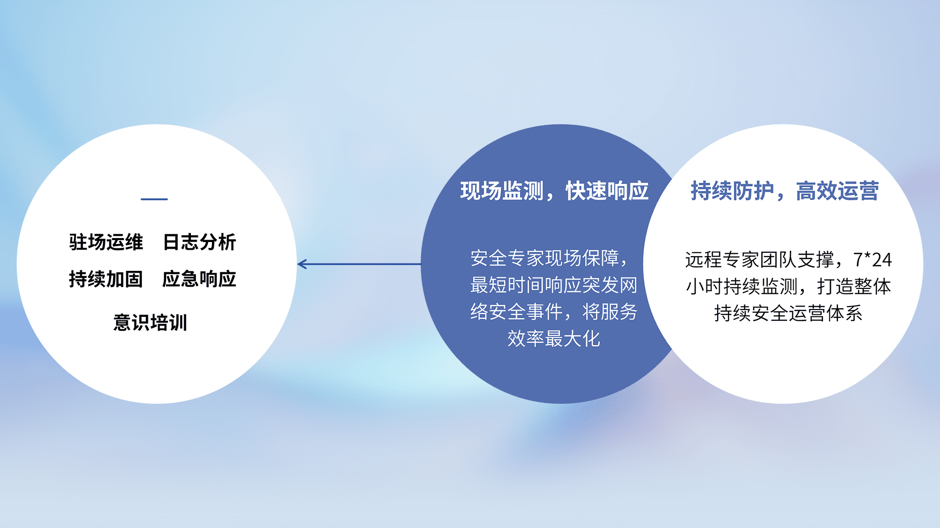 7X24小时持续监测安全事件,保持安全策略有效性,降低资产脆弱性风险,,精准拦截黑客攻击,,,,减少被黑客利用的机会,,,,第一时间遏制,,降低损失。。。。